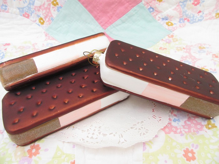 ナポリタンアイスクリームサンドのガラス製オーナメントです。