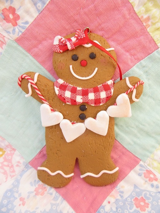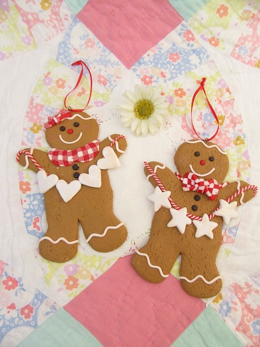 ガーランドを持ったジンジャーブレッドのクレイ製オーナメントsetです。