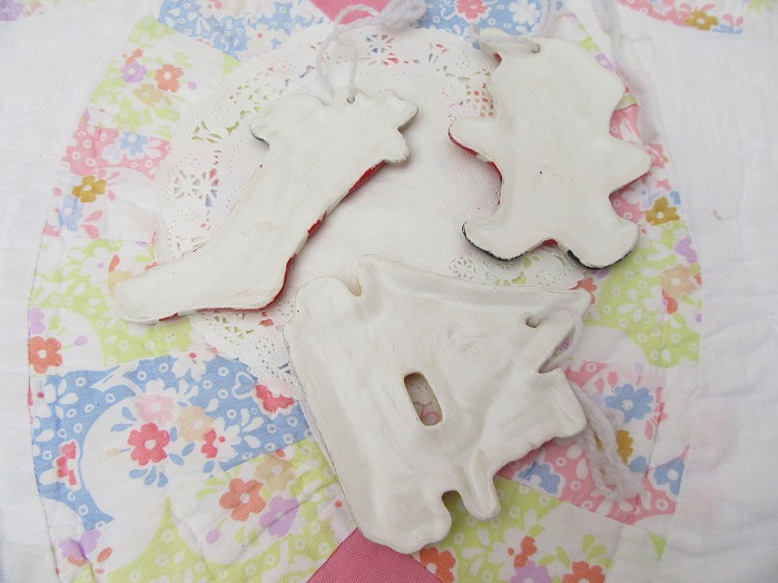 セラミックプレートにハンドペイントされたオーナメント3個セットです。