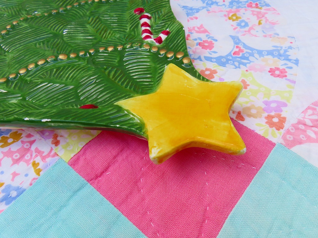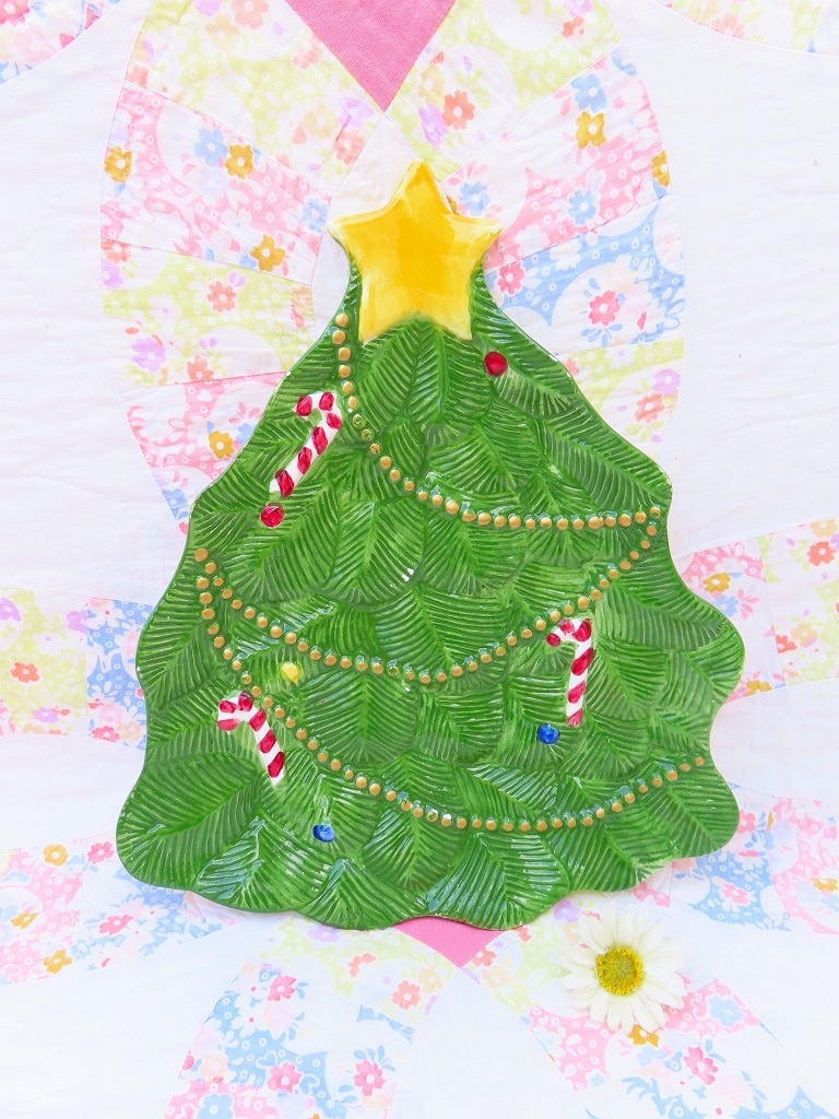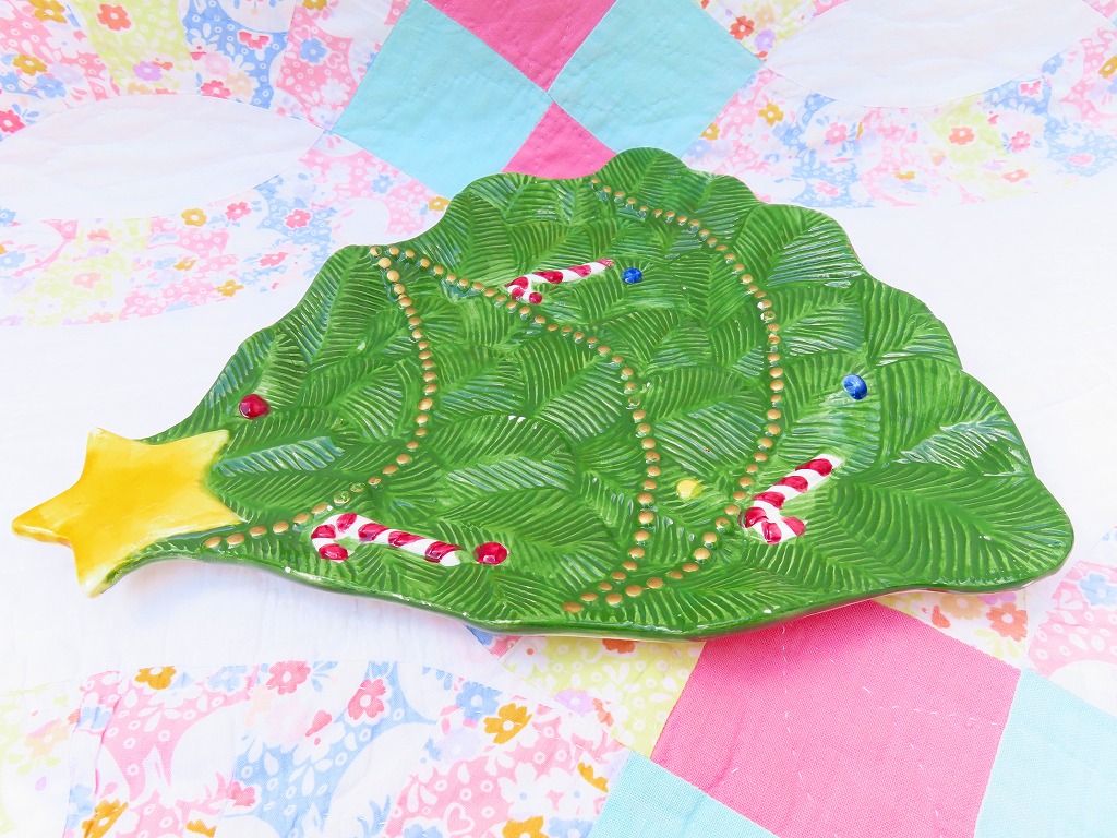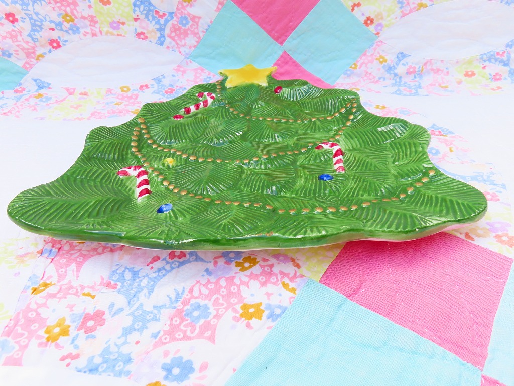 シンプルな飾りのクリスマスツリー陶器製プレートです。