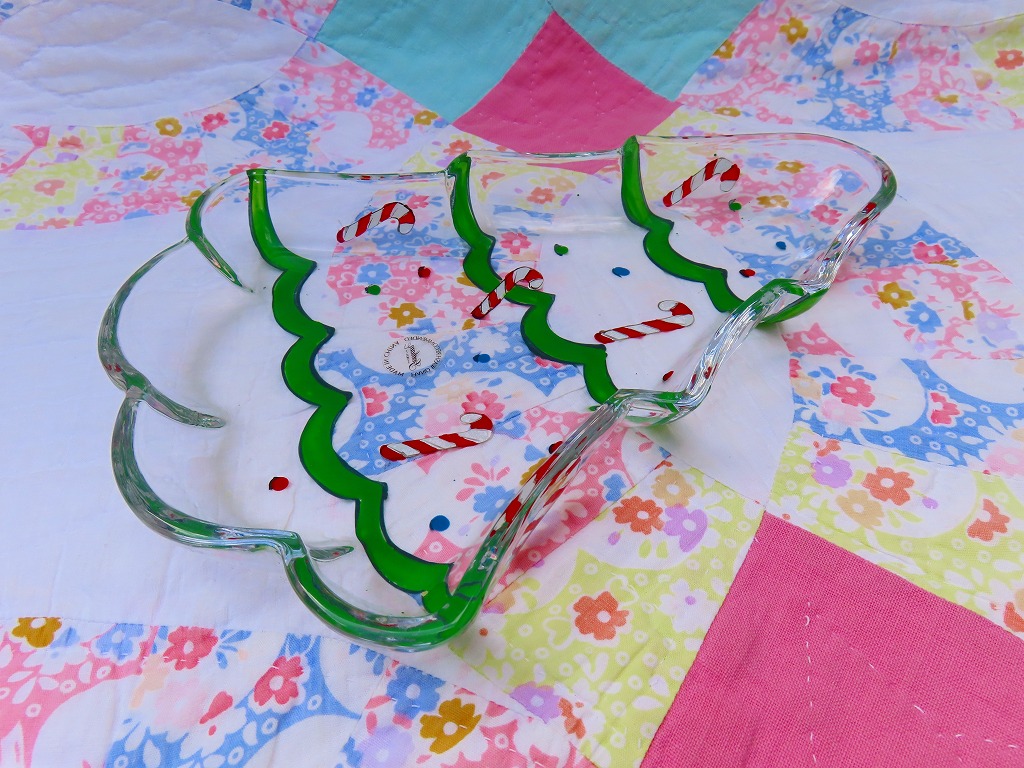 厚みのあるガラスにキャンディケーンがハンドペイントされています。