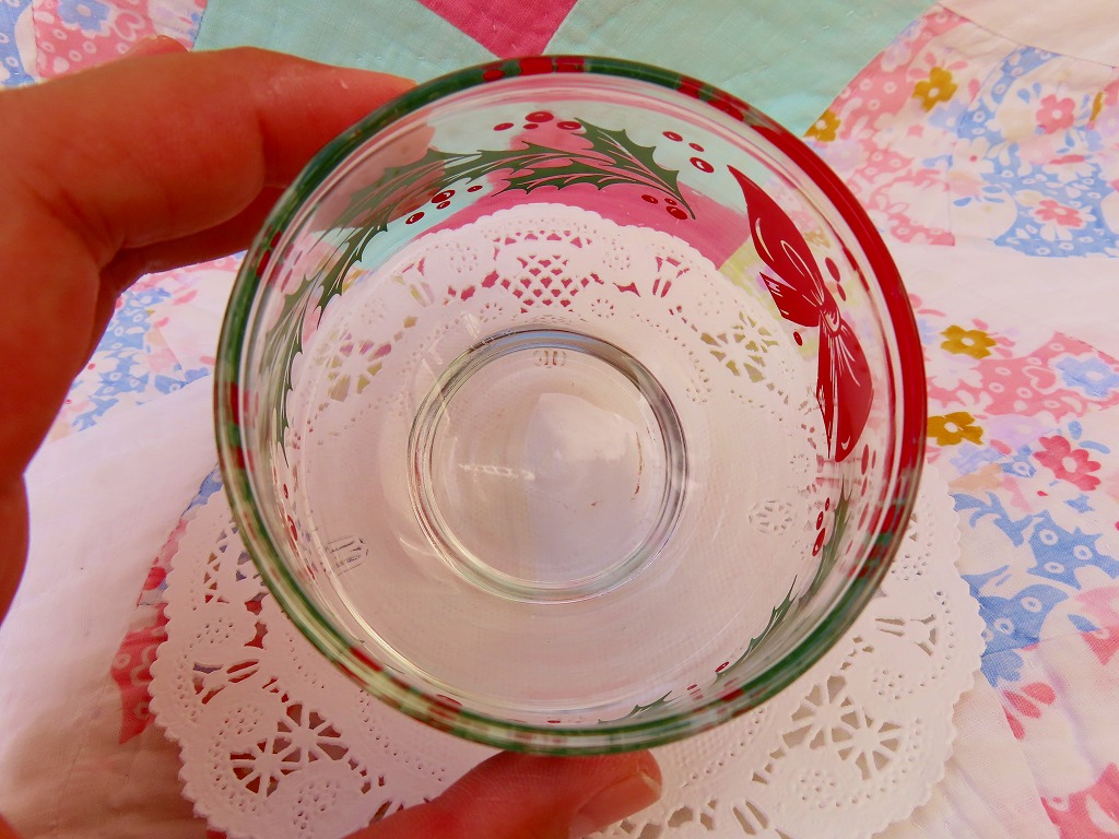 赤いリボンとホーリープリントのショートタイプLibbeyグラスです。