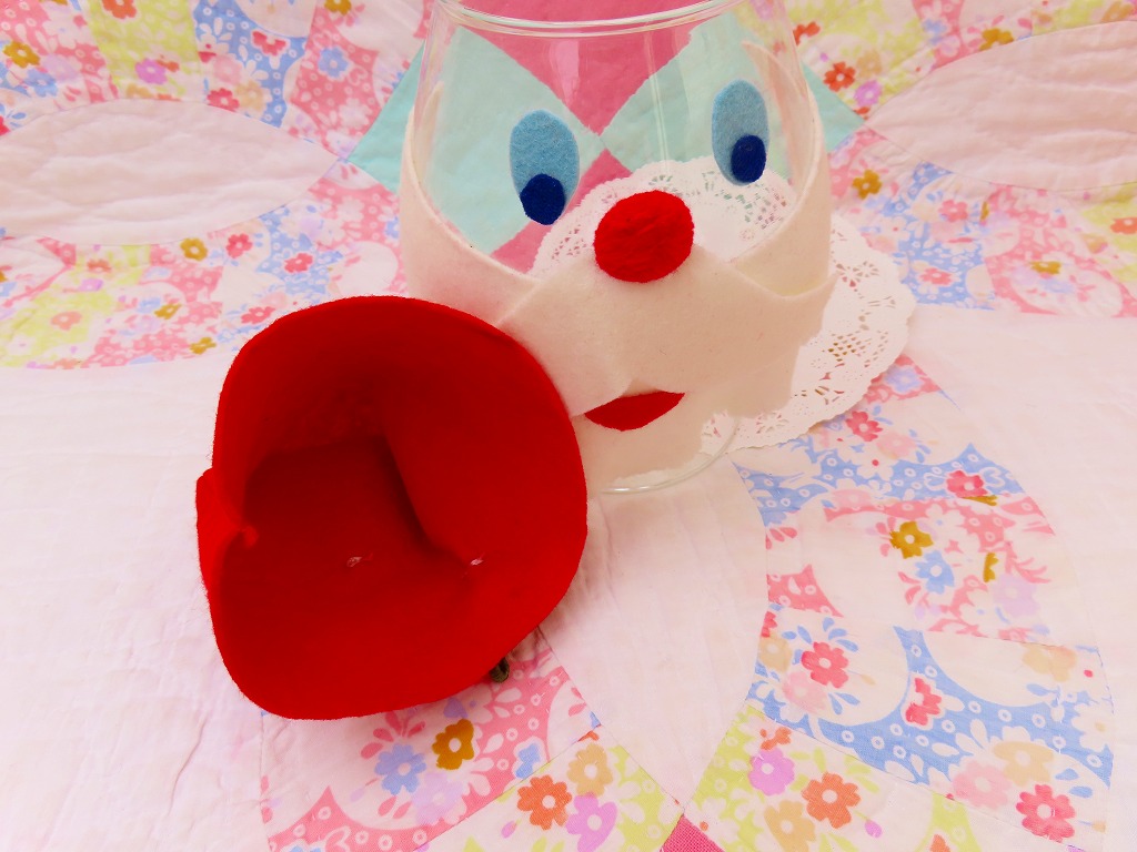 ブランデーグラスにフェルトを貼り付けて作ったサンタクロースです。