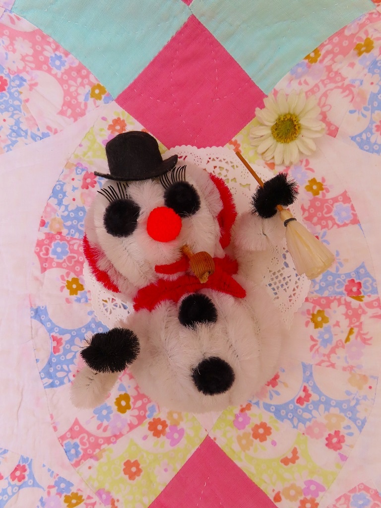 バチバチまつげにパイプくわえたスノーマンのマグネットです。