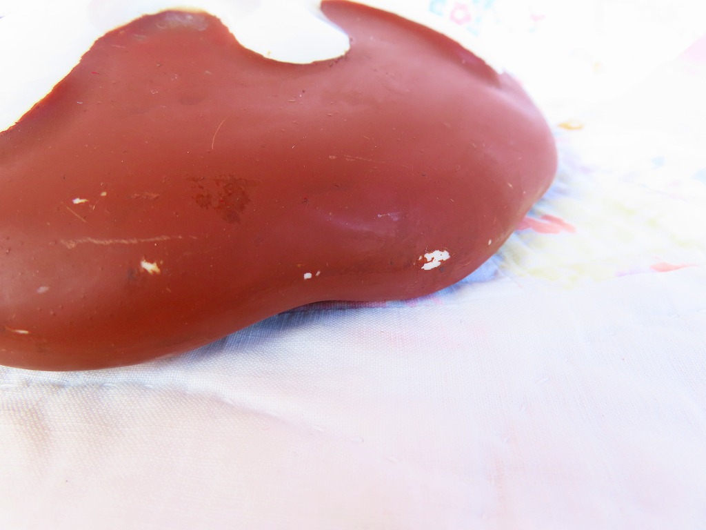 蓋のチョコレート部分に色むらと小さな剥げが見られます。