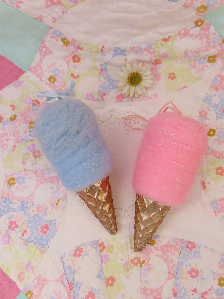 コーンの部分がガラスでアイスの部分は綿で作られています。